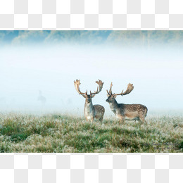 户外草地梅花鹿天空