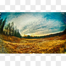 蓝色天空黄色草原森林