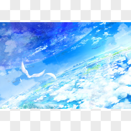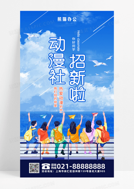 蓝色天空海边卡通动漫风格动漫社招新啦UI手机宣传海报