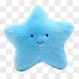 毛绒风格天蓝色笑脸星星免抠元素