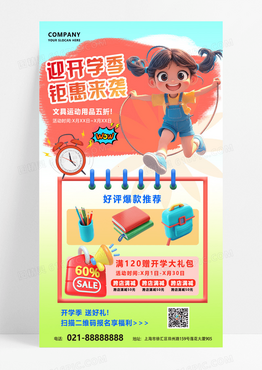 绿色渐变3D潮流开学季淘宝天猫电商活动首页促销