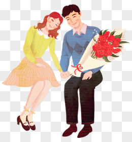 手绘扁平情侣恩爱拥抱场景免抠元素