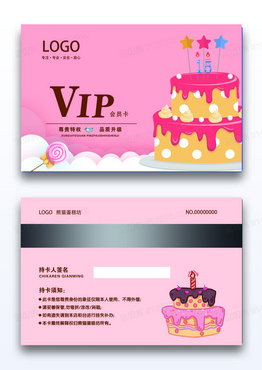 粉色剪纸简约大气插画风甜品店蛋糕会员卡