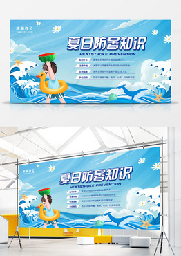 手绘插画风夏日防暑知识宣传展板