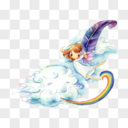 创意手绘水彩彩虹天使