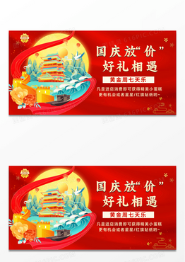 红金色简约国庆展板天坛天安门手绘展板展架模板