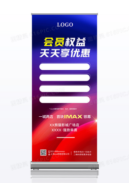 紫色渐变会员权益紫色渐变会员权益天天享优惠促销活动展架易拉宝