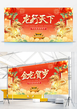 红色国潮2024龙年新年春节龙行天下展板