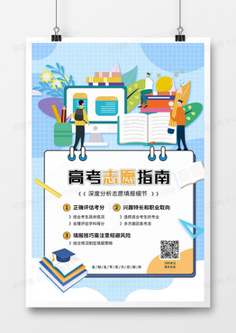 蓝色清新卡通高考志愿填报指南宣传海报设计