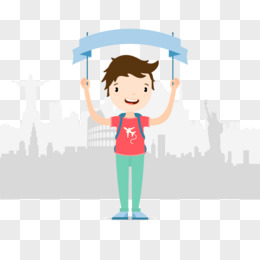 举条幅 旅行男孩 矢量素材 旅行 卡通