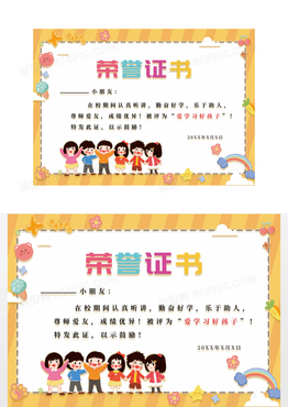 2023年卡通橙色可爱条纹幼儿园荣誉证书奖状