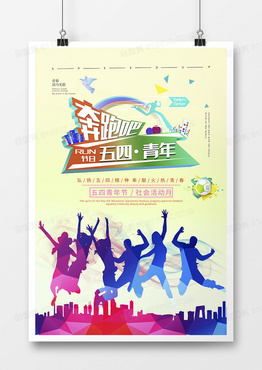 黄色跳跃多彩斑斓炫彩风五四青年节节日海报