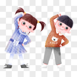 手绘插画风男孩和女孩做广播体操免抠元素