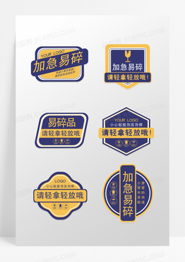 蓝色创意造型加急易碎易碎品标识标贴不干胶