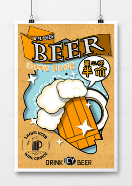 创意剪纸立体风格啤酒海报