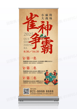 仿古纸张背景雀神争霸棋牌室活动贴图活动易拉宝棋牌室展架