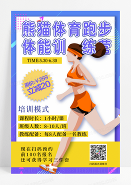 创意孟菲斯体育跑步体能训练营中考体育宣传海报