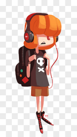 卡通手绘女孩听歌免抠元素