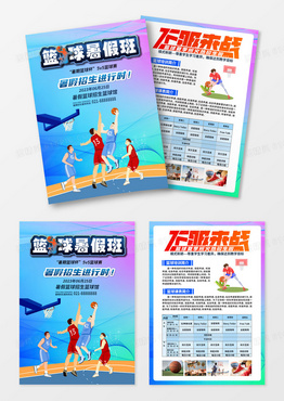 彩色手绘卡通少儿篮球暑期班招生篮球暑假班暑期班培训班招生单页