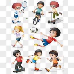 一组卡通手绘插画风儿童体育课运动组图元素四