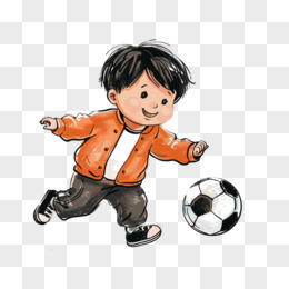 手绘小朋友踢足球免抠元素