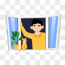 手绘卡通女孩打开窗户通风免抠元素