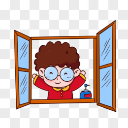 卡通手绘小男孩开窗通风免抠元素