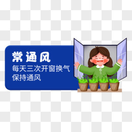 卡通手绘男生开窗提示勤通风免抠元素