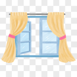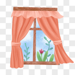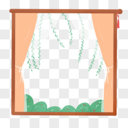 卡通手绘窗户窗帘窗外风景元素