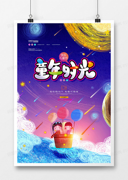 唯美线圈童年时光儿童节海报设计