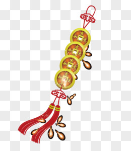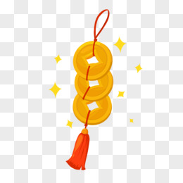 一组手绘插画风新年小元素新年套图合集之铜钱串素材