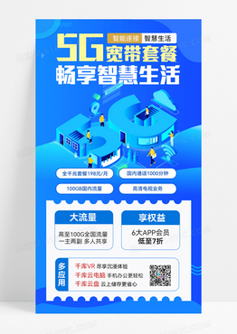 蓝色科技简约5G宽带套餐畅享智慧生活5G宣传手机网络手机通讯通信技术海报