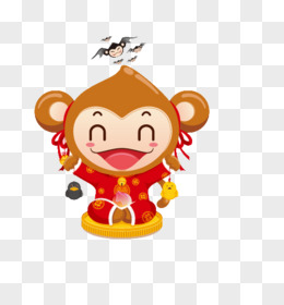 卡通猴子年货节透明底背景PNG素材