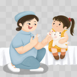 卡通护士给小女孩打疫苗场景元素