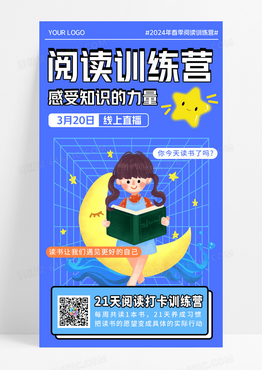 蓝色透视简约阅读训练营感受知识的力量读书手机宣传海报