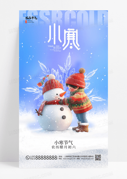 蓝色小寒冬天3D头套可爱人物简24节气海报