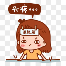 卡通手绘女孩发烧头疼贴退烧贴免抠元素