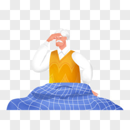 卡通手绘免抠老爷爷头疼卧床休息免抠素材
