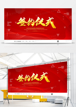 红色大气签约仪式背景企业会议展板