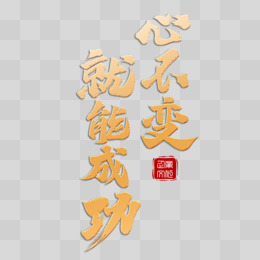 心不变就能成功红金创意字