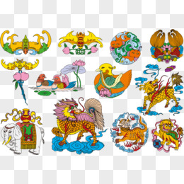 一组矢量幽夜青唯美浪漫手绘蒙古花纹元素