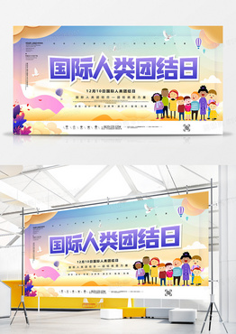 卡通简约国际人类团结日宣传展板