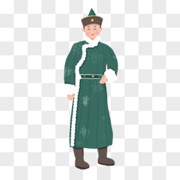 红色手绘穿传统服饰的蒙古女孩免抠素材