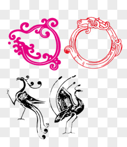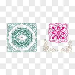 手绘国潮风敦煌多彩花纹免抠装饰元素
