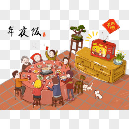 一家人吃年夜饭手绘插画元素