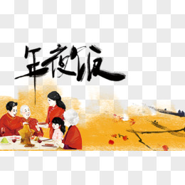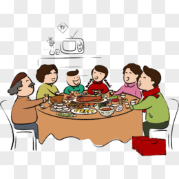 手绘卡通三十除夕夜团圆饭年夜饭免抠元素