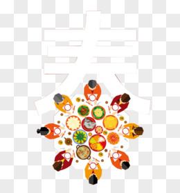 手绘卡通一家人团圆吃年夜饭免抠元素