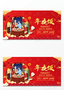 红色大气喜庆兔年春节年夜饭团圆宴预订展板