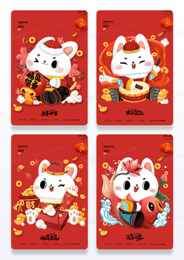 中国风2023兔年新年好新年新春海报设计拜年春节海报组图