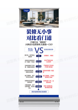 白色蓝色简约装修五小事对比看门道装修易拉宝设计装修展架